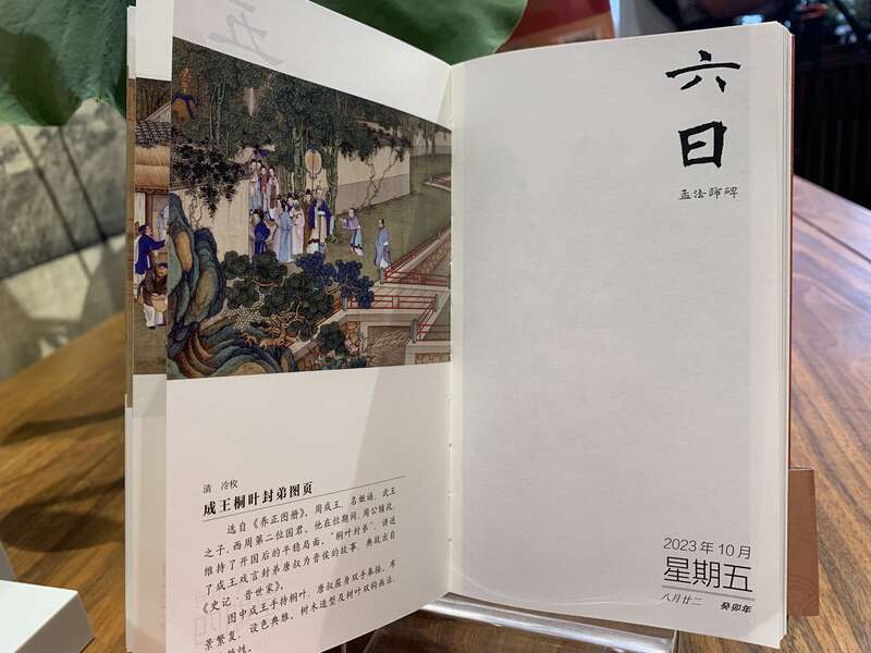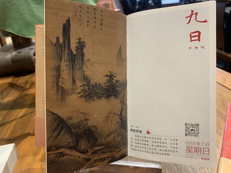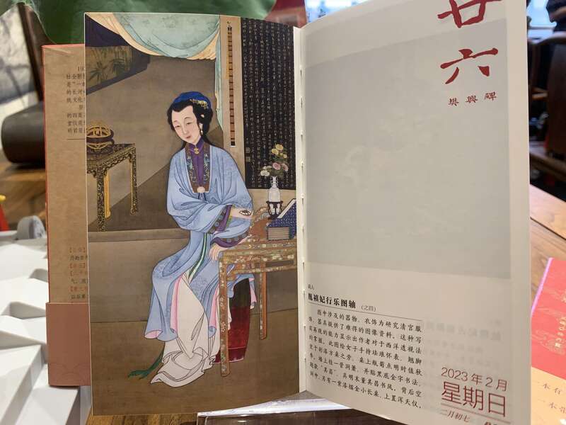 杨丹霞介绍,《故宫日历:书画版·2023年》以“千秋佳人”“林下精致”“众生百态”“庙堂仪范”作为四季的主题,依据故宫博物院的展览,以人物画为主体,出现闺阁佳丽、逸士高隐、贩子日子、明君贤臣的典故或故事。
